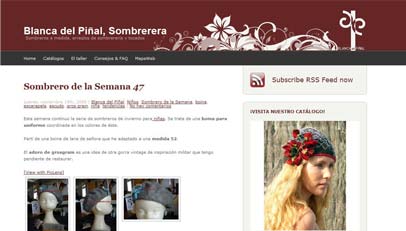 Blanca es una profesional del diseño y la restauración de sombreros, una auténtica sombrerera del siglo XXI. Además de todo esto también tiene una destacada presencia en la red con su blog «Consombrero», en el que podemos ver sus diseños y aprender con sus buenos consejos.