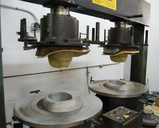 En las imágenes pueden ver las máquinas en pleno proceso de planchado de sombreros de paja y panamás.