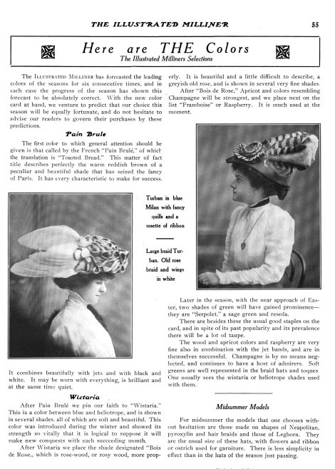 «The Illustrated Milliner Company» era el encargado de su publicación mensual, y tenía un coste de tres dólares por la suscripción para todo el año. La revista, que se publicaba en la ciudad de Nueva York, recogía las tendencias y estilos que por aquella época marcaba la moda en Londres y Paris.