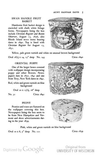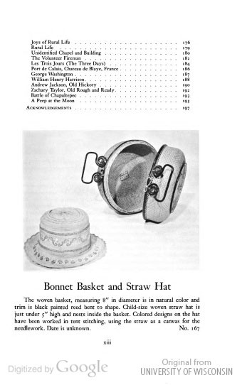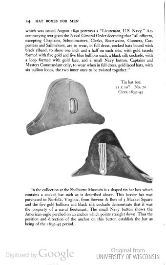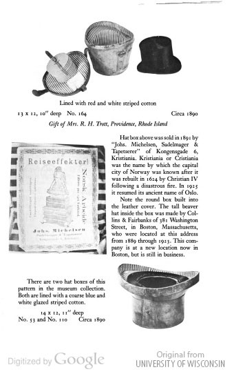 Titulado «Hat boxes and bandboxes at Shelburne Museum» y escrito por Lilian Baker en 1960, consta de unas 200 páginas llenas de ilustraciones y fotografías de la colección perteneciente al Museo de Shelburne.