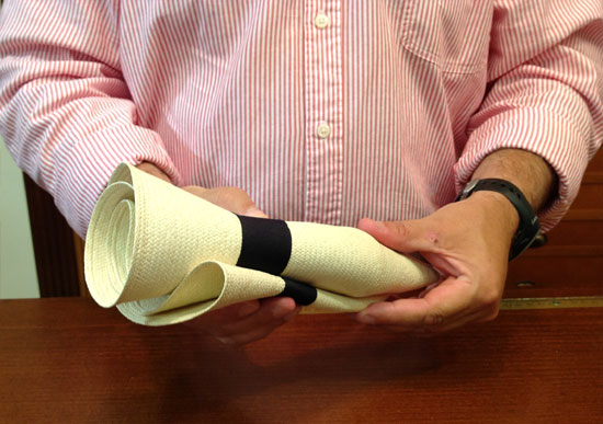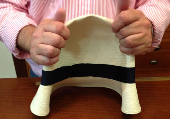 Debemos aclarar que lo que explicaremos a continuación son unas sencillas instrucciones para el doblado, pero dejando claro que ni todos los sombreros se pueden doblar, ni todos los panamás están en condiciones de ser doblados debido a su desgaste, grado de humedad, etc.