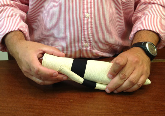 Ahora proceda a enrollarlo con cuidado sin aplastarlo mucho ni marcar la línea por la que ha sido doblado.
