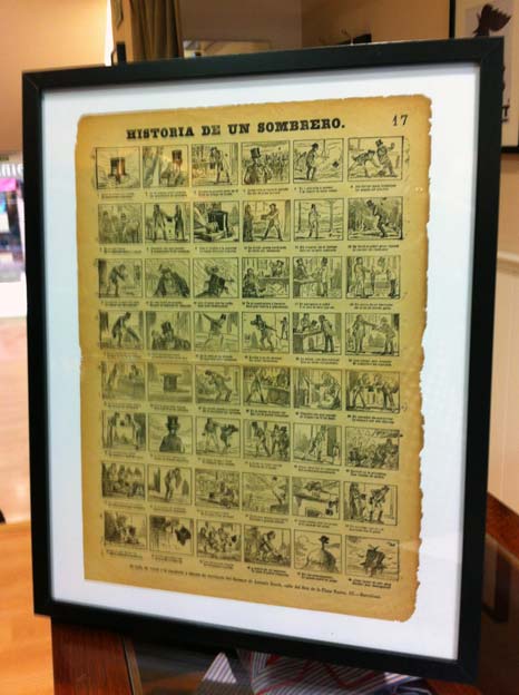 En este caso hemos tenido la gran suerte de poder adquirir un ejemplar de la «Historia de un Sombrero«, y como pueden ver en la fotografía, ya se encuentra protegido por un marco y a la vista de todos nuestros clientes en Sombrerería Albiñana.