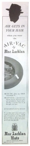 Mac Lachlan Hats distribuía un novedoso sistema de badana, denominado «Air-Vac»que permitía el paso del aire, con lo que se lograba un uso mucho más cómodo del Sombrero.