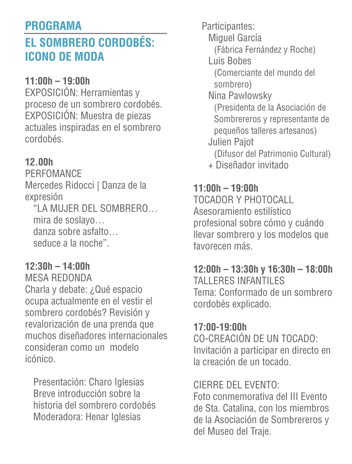 La jornada está organizada por la Asociación Sombrereros de España y el Museo del Traje de Madrid. En ella este año se rendirá un pequeño homenaje al Sombrero Cordobés, uno de los iconos de la moda.
